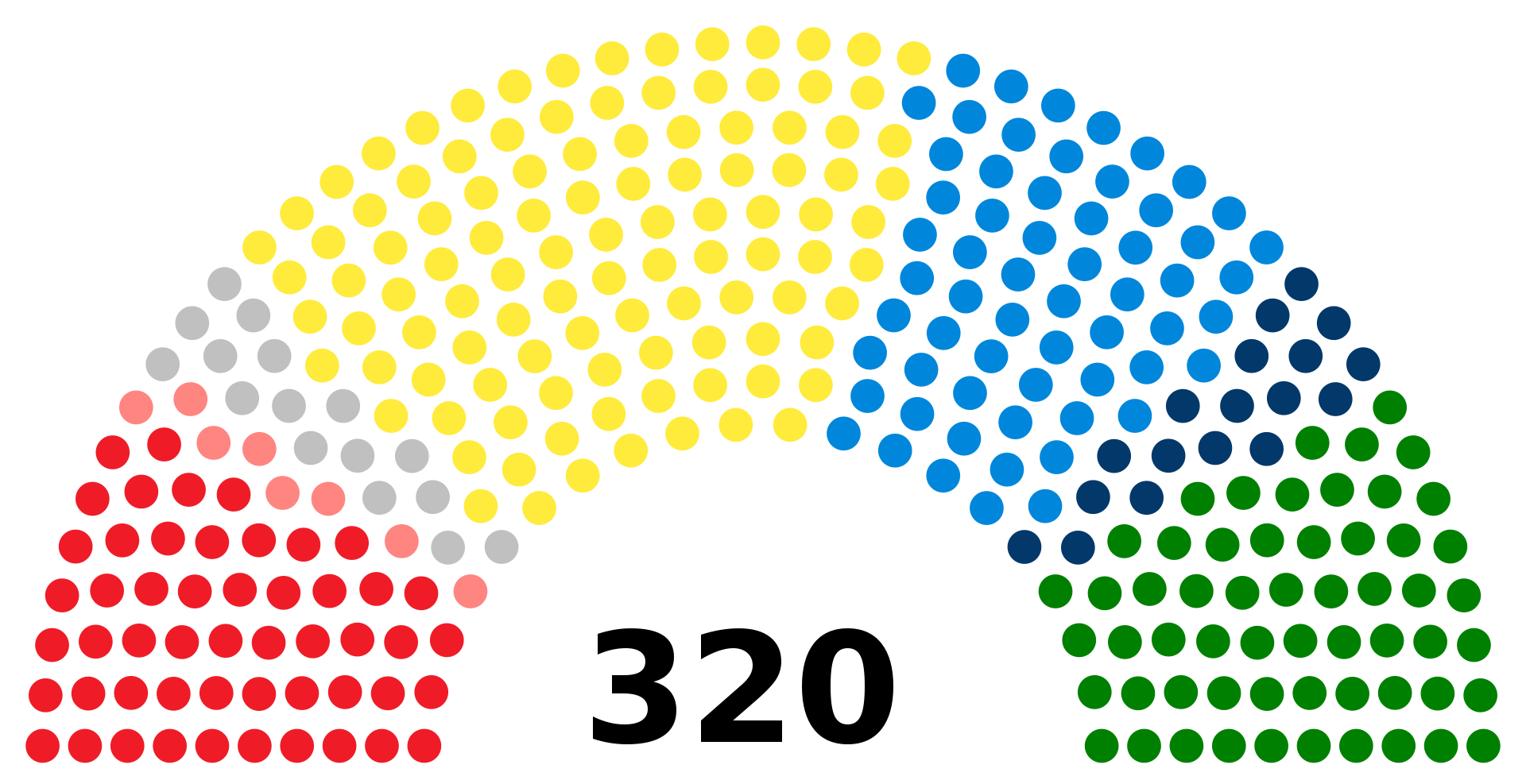 Lega (Green) 58 seats. 5 Stars (Yellow) 112 seats. Together: 170 seats.