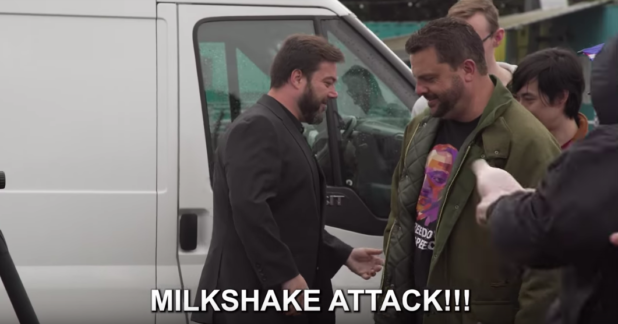 It is understood a man and a woman tried to target Mr Benjamin with the milkshake but missed.
