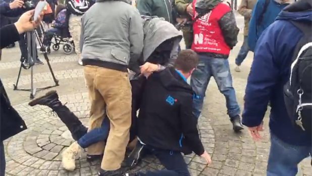 Mr Benjamin was holding a gathering on Lemon Quay in Truro, Cornwall, with British activist Milo Yiannopoulos.