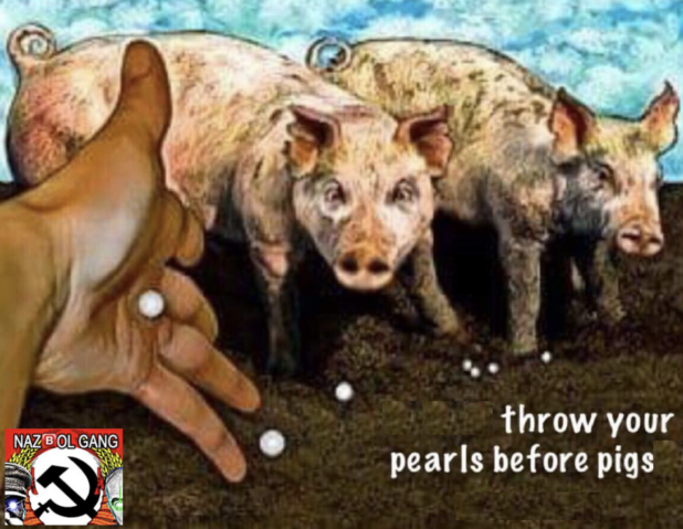 You people aren’t swine. You’re my people. My brothers. The swine are on Twitter. So I’ve got to cast these pearls as Twitter embeds.