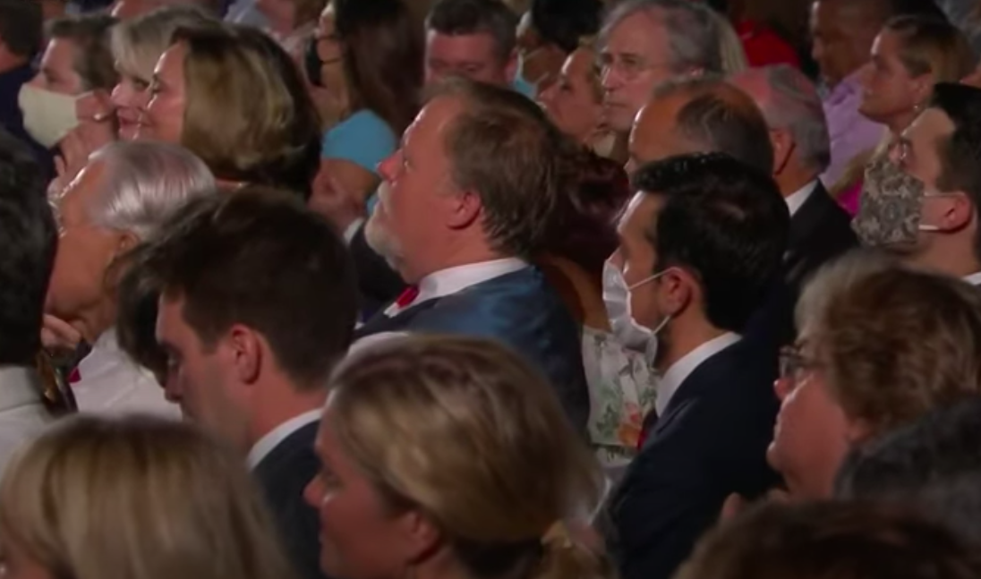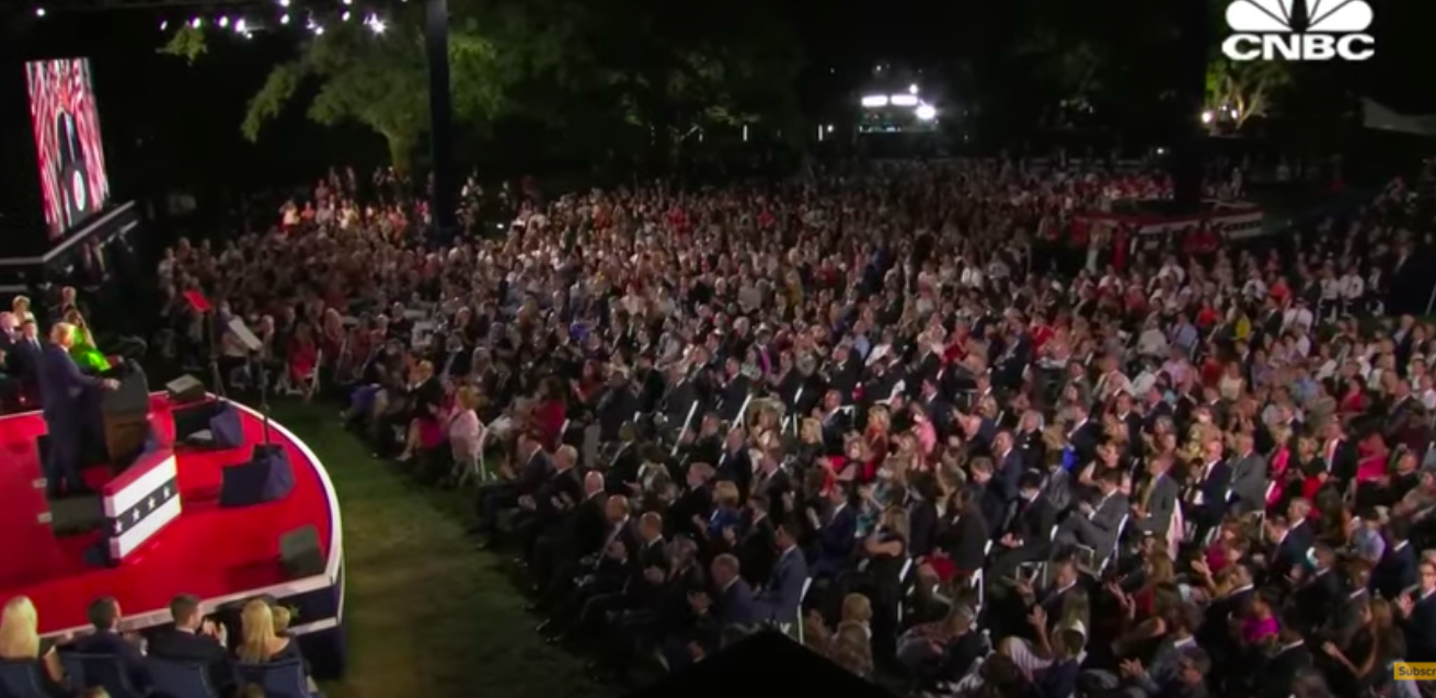 He spoke outside of the White House to a real crowd of people (not a Zoom crowd), and the people were not even wearing those disgusting cuck muzzles.