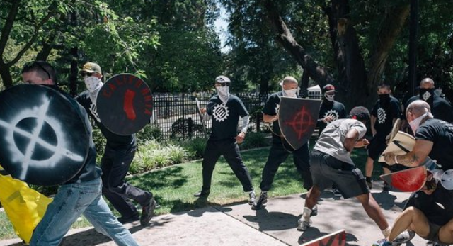 In June 2016, a few dozen nationalist supporters of the Golden State Skinheads and Traditionalist Worker Party attained permits to speak at the Sacramento capitol building. They obeyed all orders from officials, but the police refused to protect their rally. “Somehow” 300 communists and anarchists with no permit got through and began assaulting the nationalists.