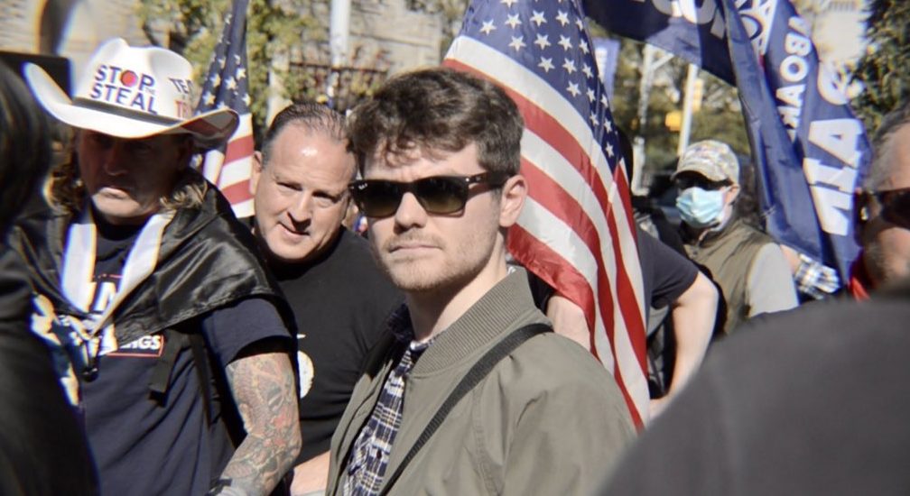 Nick Fuentes appeared for a second time this weekend at a Stop the Steal anti-fraud event in Arizona on Sunday, giving a speech to a crowd outside the capitol building.