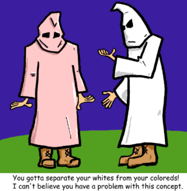 At this point, I half-expect them to come out and say that you shouldn’t bleach your clothes anymore because it perpetuates the stereotype that White=clean and that you shouldn’t separate your Whites from your colors because that reeks of segregation and racial discrimination.