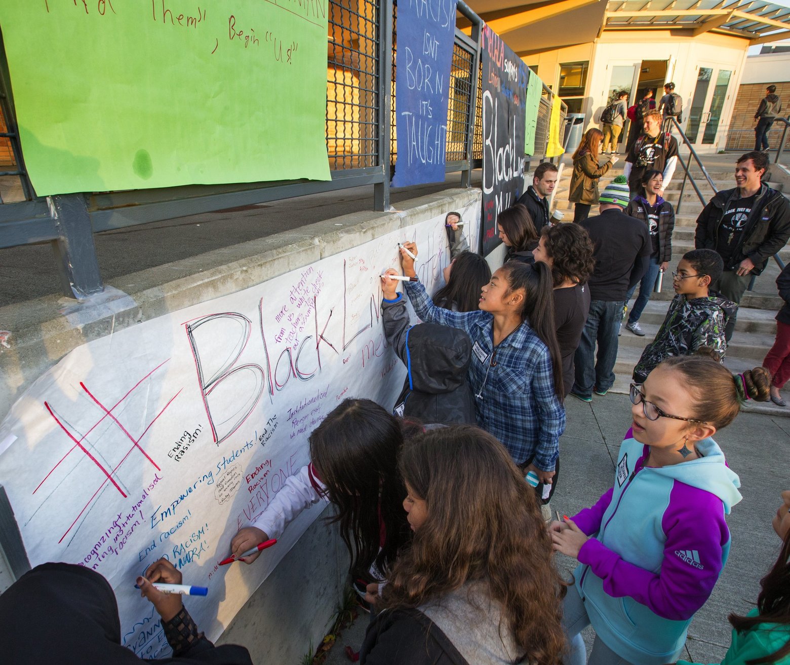 “Black Lives Matter At School” wasn’t sponsored by the school district, but it coincides with Seattle Public Schools’ “day of unity,” aimed at bringing more attention to racial equity in education. The district said in a statement that it has asked students, family, staff and community members to “engage and join the conversation in our united efforts to eliminate opportunity gaps.”