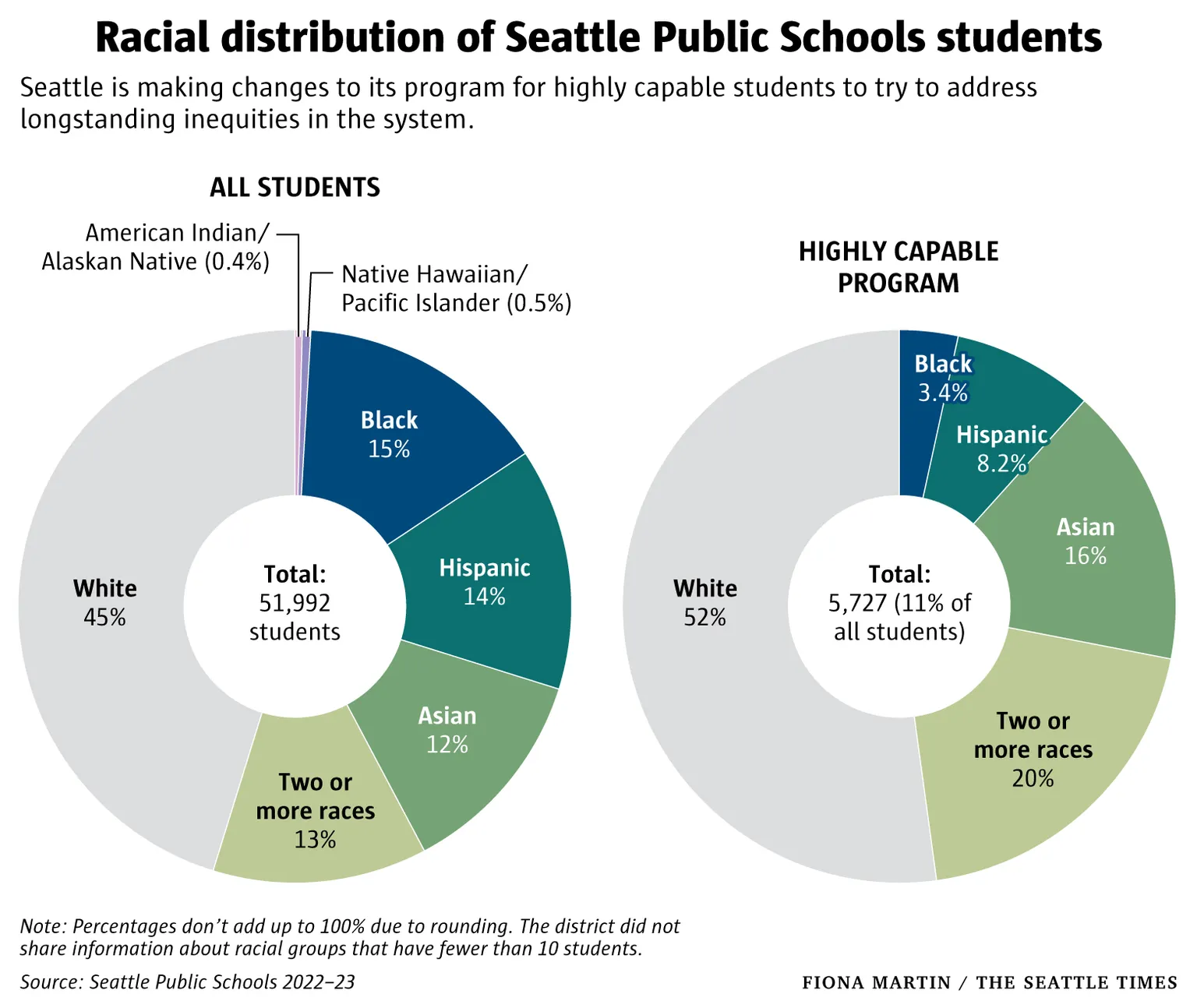 “In the 2022-23 school year, 52% of highly capable students at SPS were White, 16% were Asian, and 3.4% were Black,” according to the Seattle Times’ analysis of school data.
