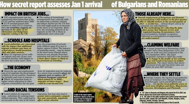 After immigration controls are lifted this week, Britons could find their jobs are squeezed in some areas – while community tensions could rise as the new wave of migrants fight for work with other Eastern Europeans who have been settled in Britain for a decade, it suggests.