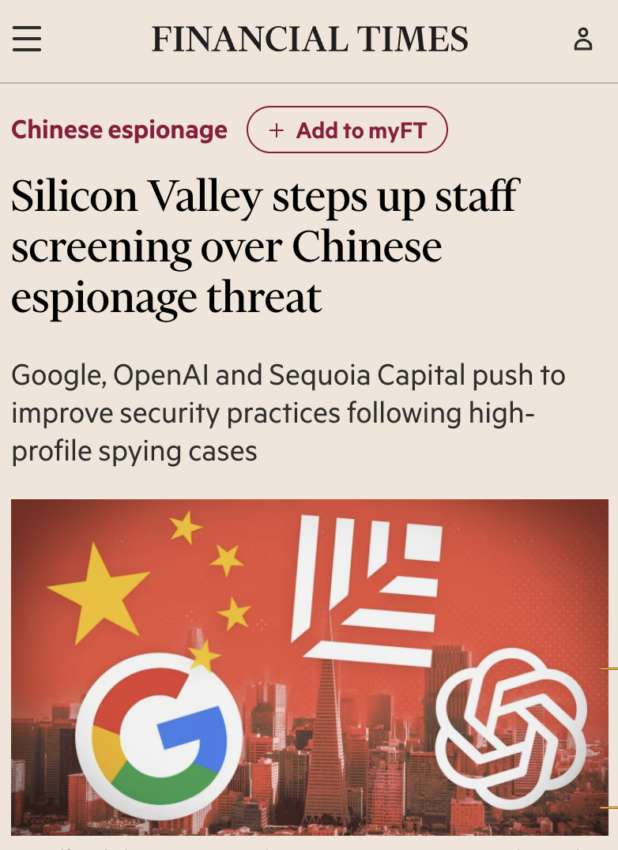 In 2023, the then FBI overlord Christopher Wray held a meeting with his “Five Eyes” satraps to warn of the Chinese tech threat, and effectively instructed tech companies and universities not to hire Chinese people. In so many words.