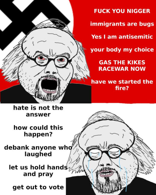 He’ll still do the ā€œI worship the kikes because they are the chosen onesā€ bit.