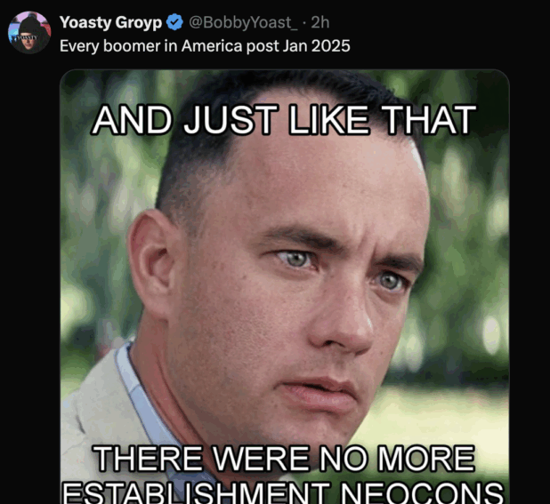 To be clear, there is no way any Republican will win in 2028. I don’t believe elections are real, and I argued before the election that Trump would be allowed to win because Jews want him doing these wars for Israel. That seems to have played out, or be playing out, exactly as I said it would. But even if you believe elections are real, it is already obvious that Trump has completely burned any chance of any GOP candidate winning in 2028.