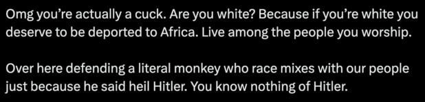 Saying “heil Hitler” is always good and people who claim black people are fundamentally evil in some way are confused or lying. Black people are primitive, low IQ relics of the prehistoric past. Of course if you unleash them, it’s going to cause problems. Who unleashed them? They didn’t unleash themselves, I can tell you that.