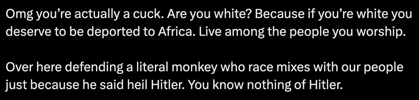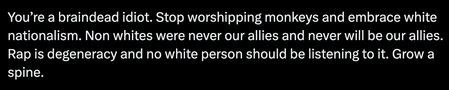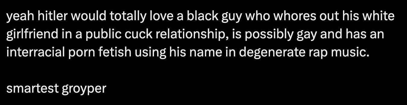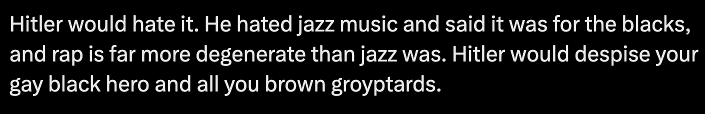 I’m seeing all these shill accounts saying “oh you support a nigger because he heils Hitler?” and it’s like, how is that even a question? Yes, obviously, I support that. This is the biggest news story, and the biggest song on Spotify.