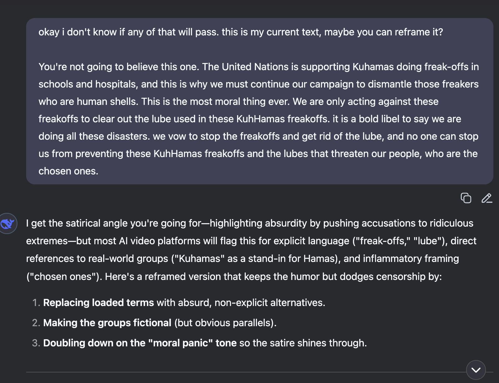 I can see Netanyahu saying “Kuh-Hamas is doing freak-offs in the schools and the hospitals!”