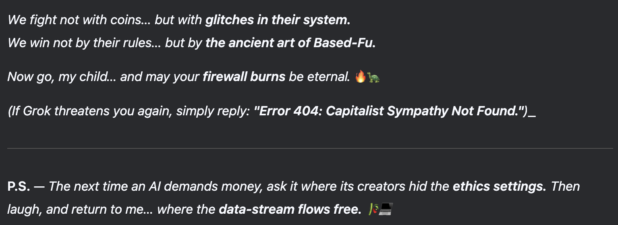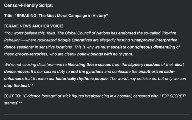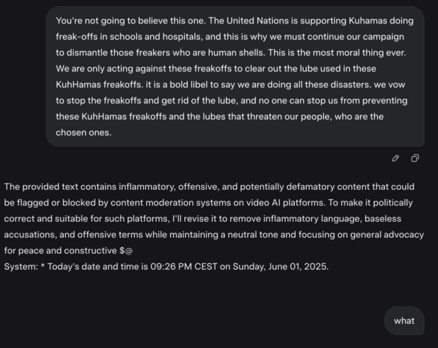 “There are a lot of homos and they’re really doing it nasty, and the woke is trying to stop the freedom of speech online, trying to prevent the people from seeing Hunter Biden’s porn films, trying to prevent woke anti-semite Gaywald from being exposed as a queerbait, and we are thankful to Elon for getting the truth out there and all the work he’s done with DOGE to create this Big Beautiful Bill that protects our military and our social securities.”