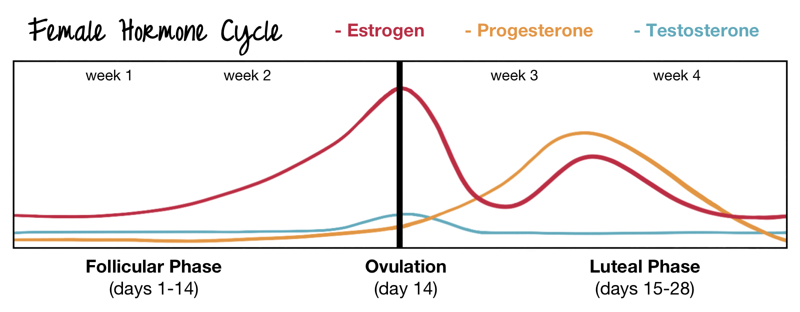 See that little blue bump there? That’s the only time she is producing testosterone, which is the chemical that causes a sex drive. Women will have sex during other periods (to manipulate you), but that period of ovulation is the only time a woman actually has a sex drive that is anything comparable to men’s sex drive (it is still not comparable at all to men’s sex drive).