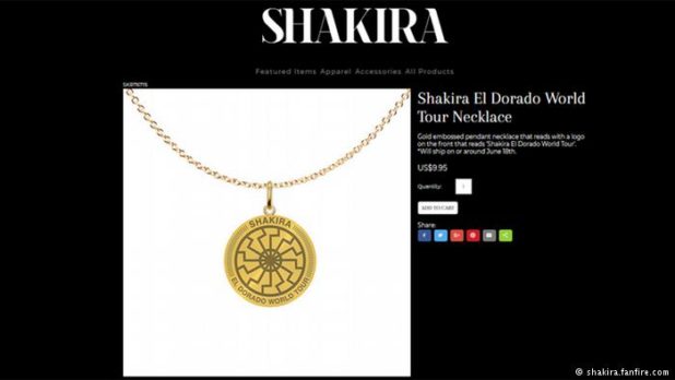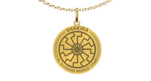 Shakira fans were shaking their heads after spotting what appeared to be a Nazi-like symbol on a necklace for sale on the singer’s fan website. The $9.99 gold pendant necklace was meant to promote the star’s “El Dorado World Tour,” which kicked off in early June.