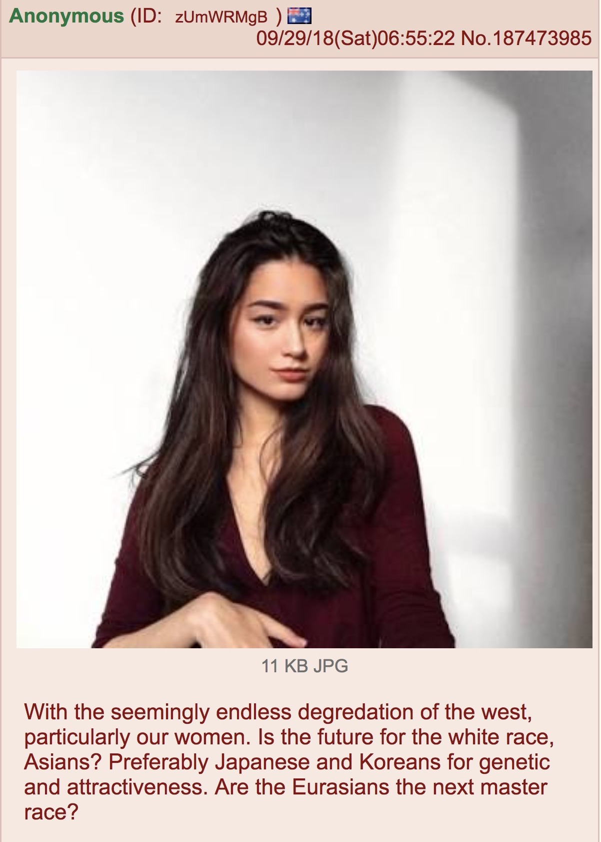 There is not a day that goes by that I don’t see some thread with guys who are woke on the woman question saying “well, I guess we’re just going to have to mix with the Asians and create a Hapa master race future.”