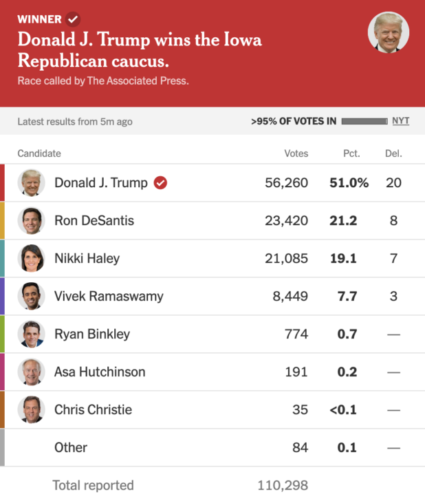 Trump won the Iowa caucus with 51%, and the media is reacting to the news with shock.