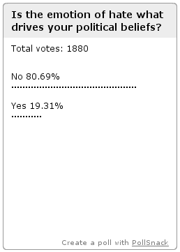 Surveying nearly 2,000 readers, the study found that a whopping 80% of the readers held political beliefs that were driven by some other emotion than hate, or simply logic and reason.
