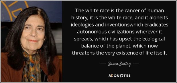 Celebrated Jewish feminist Susan Sontag (née Rosenblatt) calls the white race “the cancer of human history”. But we’re crazy to think there’s an ulterior anti-white motive to feminism.