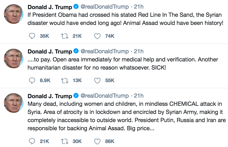 If external forces can just do a fake chemical attack, and change his policy, then how is he even making policy? How is he doing anything other than just being jerked around by people who are effectively serving as his masters?