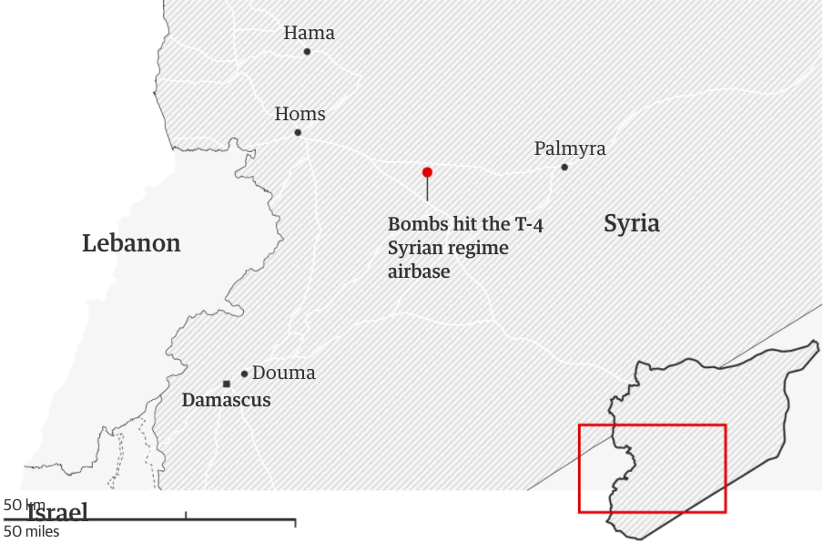 The airstrikes on Monday hit a Syrian military base known as T4, in the central province of Homs, that has been used not only by Syrian forces but also by the Iranian-backed militias that have flocked to the country to help Mr. Assad’s war effort.