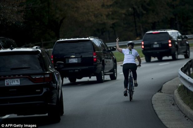 Juli Briskman, 50, became a viral sensation after she was snapped giving the finger while riding her bike near her home in Sterling, Virginia in October.