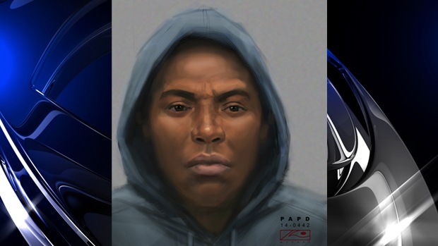Police said the primary suspect, pictured in the sketch, is described as a black man standing 6 feet tall and weighing 180 pounds. He was wearing a dark hooded sweatshirt and was unshaven during the robbery.