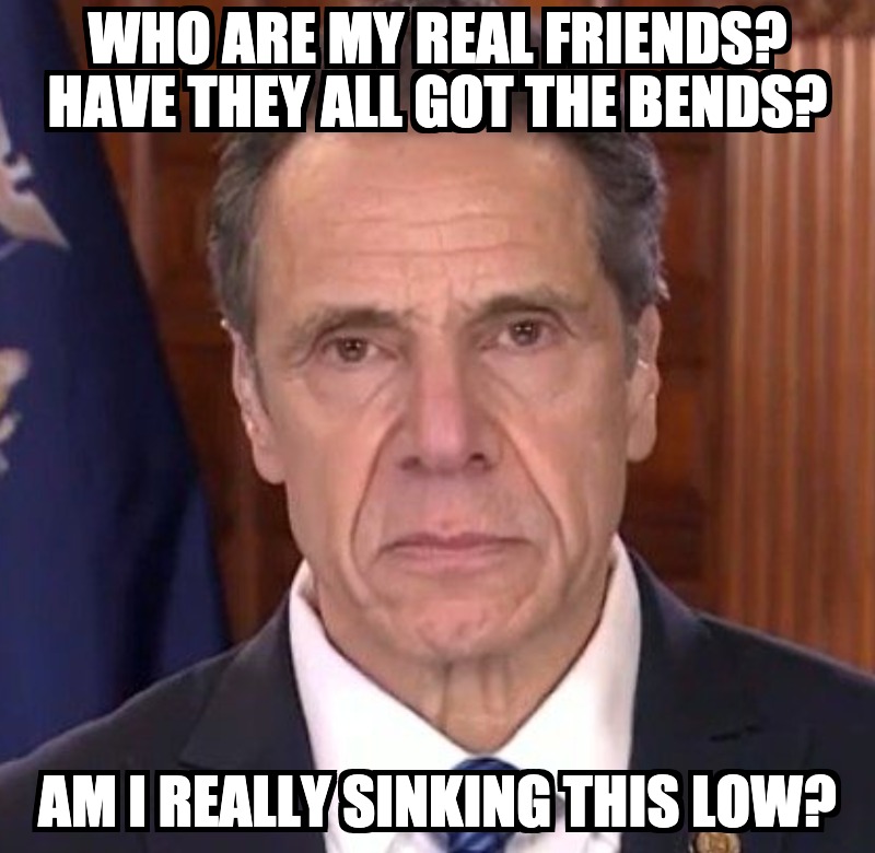 Cuomo is probably taking this very hard. His public image is very important to him. He’s probably sitting at home crying and drinking, listening to Radiohead’s “The Bends.”