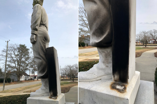Vandals have set fire to a statue of a World War II veteran they mistook for Confederate Army Commander Robert E. Lee.