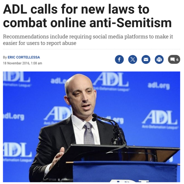 Before the 2016 election, the Anti-Defamation League scheduled a conference for November 17th, between the election and the inauguration of the next president. It was widely advertised that Hilary Clinton was to win that election, and at the conference, the ADL introduced a whole new legal framework for outlawing criticism of the Jews in the United States.