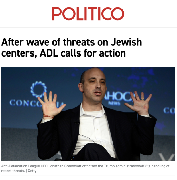 Just after Trump’s inauguration, a series of fake bomb threats began being called in to Jewish community centers across the United States. The ADL jumped all over this, and ADL head Jonathan Greenblatt began doing a tour on mainstream media to claim that Trump was responsible for the bomb threats. Other top Jews linked to the ADL, including Congressman Jerry Nadler, got in the on the action, and the prank calls became a top national news story in the very early days of Trump’s presidency. Nadler claimed outright that “Trump supporters” were responsible for the pranks.