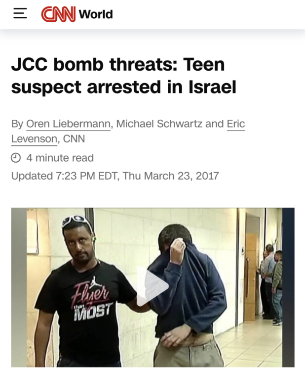 It was obvious to me that Trump would only make this claim if he already had some knowledge of the people behind the calls. In March of that year, the FBI announced that the calls were coming from Israel, and that Trump had sent them there to find the prankster. Shortly thereafter, a young Israeli Jew and his father were arrested for making these fake calls.
