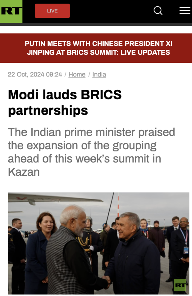 Indian PM Modi is this week in Russia for the 2024 BRICS Summit.