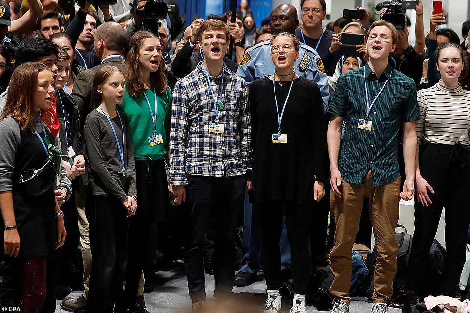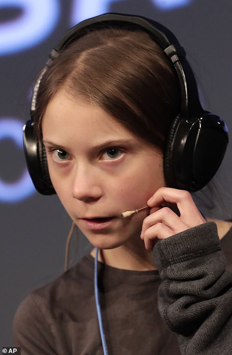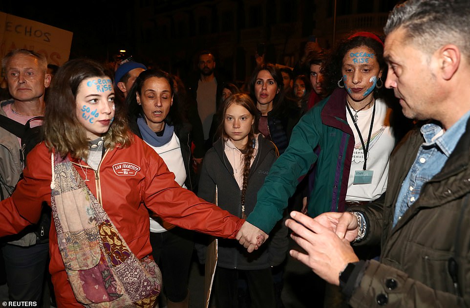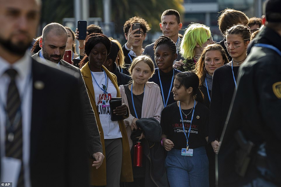 She was pictured speaking at a climate conference in Madrid Friday night.