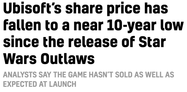 Ubisoft’s stock just dropped to the lowest level in a decade as a result of the terrible launch of Outlaws.