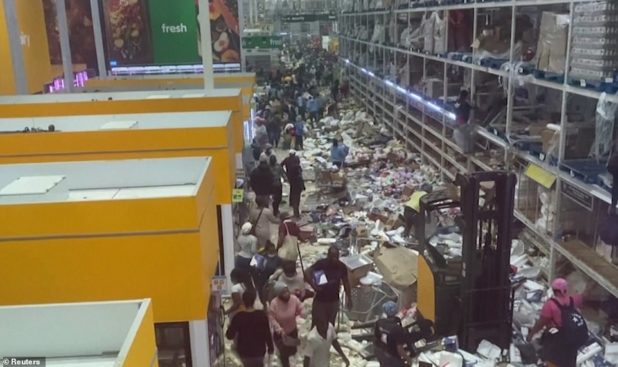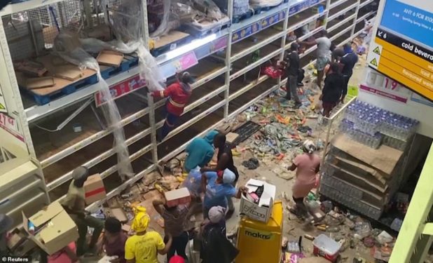 Mass looting is taking place in KwaZulu-Natal province, in particular, home of former South African president Jacob Zuma, 79, who is facing corruption charges and has been sent to prison for contempt of court after refusing to attend an inquiry into “state capture” when he held office.