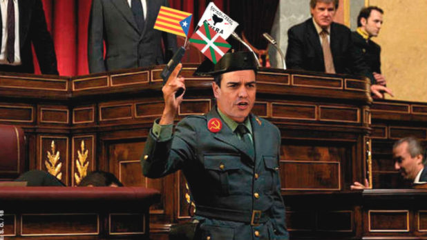 Conveniently, Spain got a new socialist government, 16 days ago. This Sánchez guy, he looks like a fun guy, snappy uniform and everything, but he’s a dirty commielonia sympathizer and all-around European-style Socialist and a bloodthirsty sociopath with an unquenchable hatred for the Spanish people.