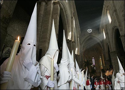 You could invite the American KKK – or what’s left of it – over to give the Spanish priests some pointers on looking spooky. Maybe show them how to do the burning cross trick.