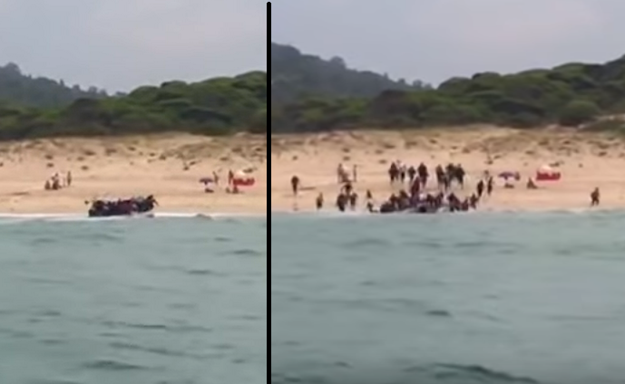 A strange sighting this weekend as on one of Spain’s nude beaches, a boat carrying some 30 illegal African migrants arrived directly from Morocco, surprising the mostly western European tourists as the group landed on the beach and ran to the forests behind it, all the time being chased by the Spanish ‘Guardia Civil’.
