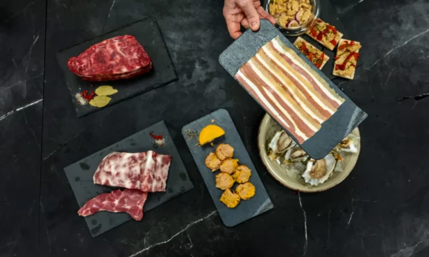 While Cocuus’s bacon and foie gras is made from a thick vegetable paste, its steak contains real beef from the 50kg of meat that are discarded or turned into cat food when a cow is slaughtered. The fat that marbles the steak is made from a vegetable mixture, making it far lower in saturated fat than the real thing.