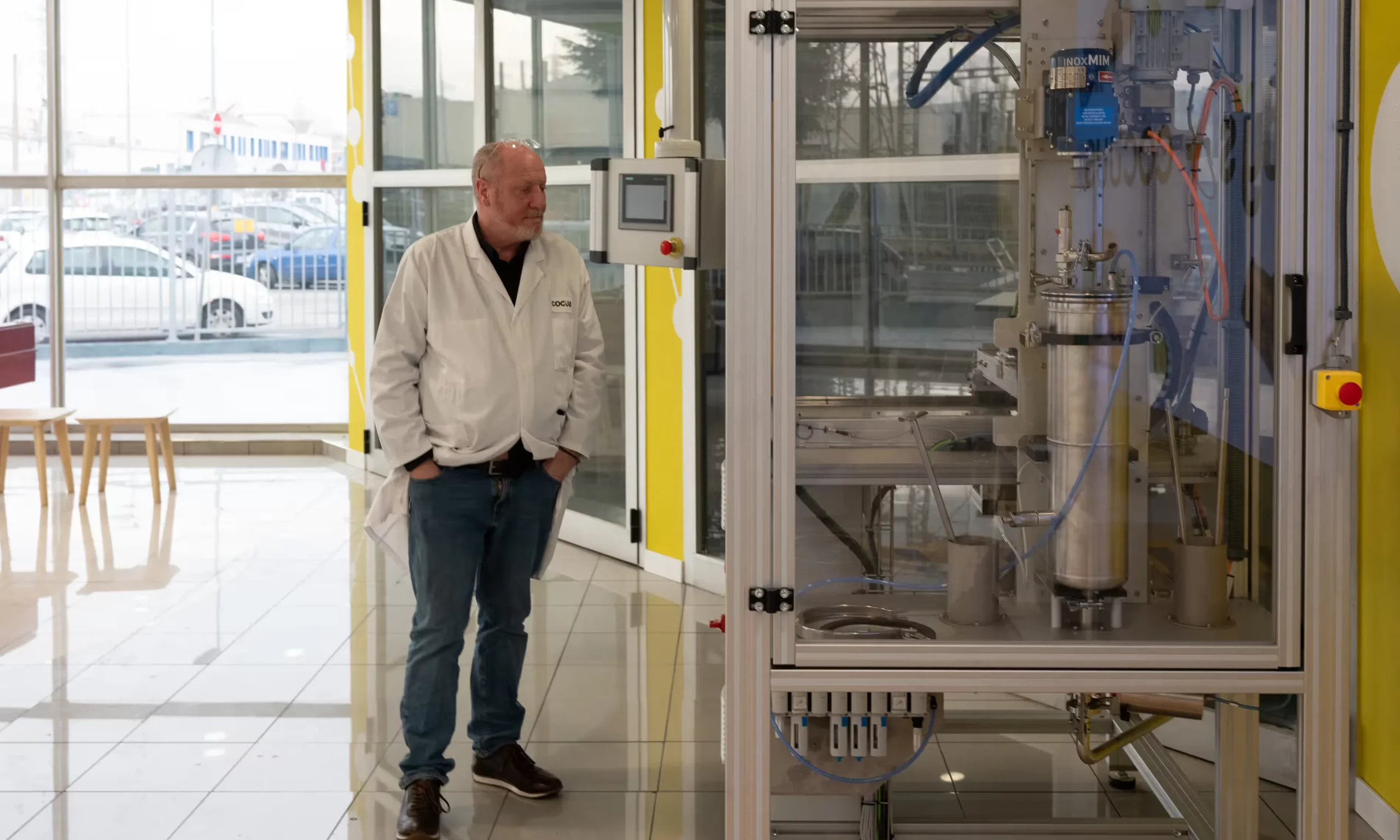 Patxi Larumbe with a 3D machine that produces prawns.