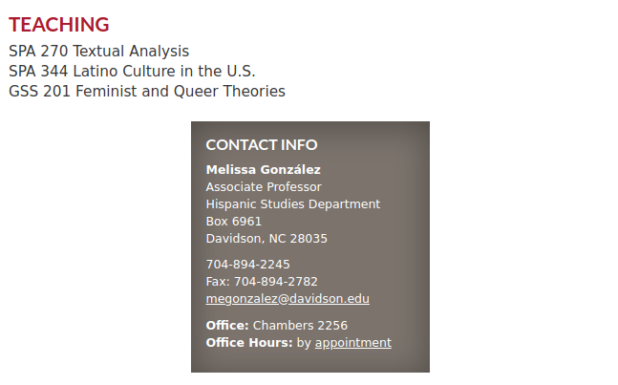 “I aim to foster classroom environments that are radically democratic and empower intellectual risk-taking,” Gonzalez states in her profile on the school’s website.