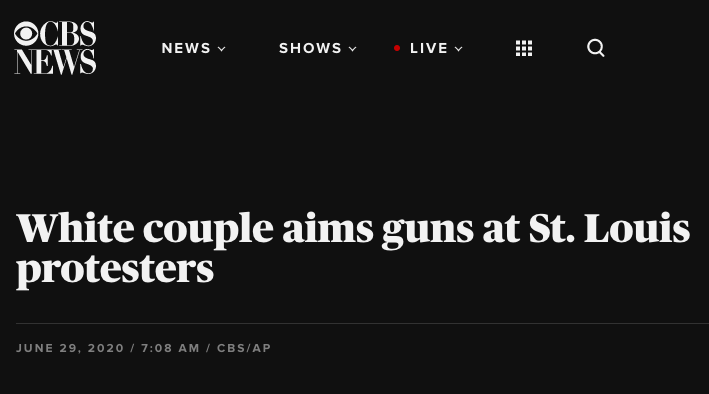 A white couple pointed guns at protesters in St. Louis as a group marched toward the mayor’s home to demand her resignation.