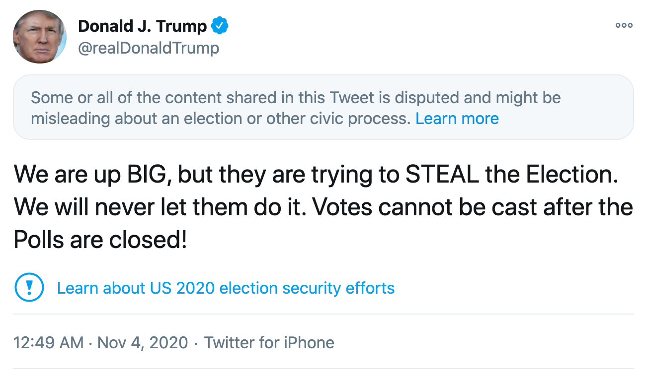 Georgia, Pennsylvania, Michigan and Wisconsin have all announced that they are pausing the counting of votes.