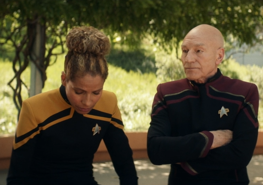 Then, at last and finally, Picard beams onto the ship that Raffi had hooked him up with, and we start to believe that maybe, finally, at the halfway point of the third episode, we might see some Star Trekking.