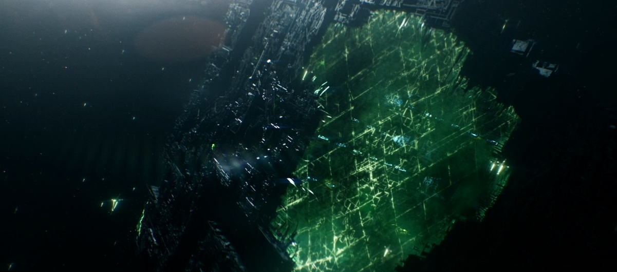 We then head back to the decommissioned Borg Cube, where there is a group of Romulans going through the wreckage and reclaiming technology.