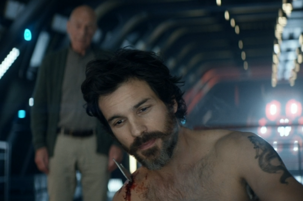 If that is the far end of “maybe interesting,” then the far end of “definitely not interesting at all” are the Romulan biker ninjas, who show up at Chateau Picard for a gunfight just as Picard is leaving for a Trek of the Stars.