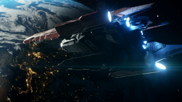 There is never any explanation as to how, while sitting in his ship docked in orbit, he got a large piece of shrapnel stuck in his shoulder, which is in keeping with this show’s modus operandi, which is “just make it look cool.”