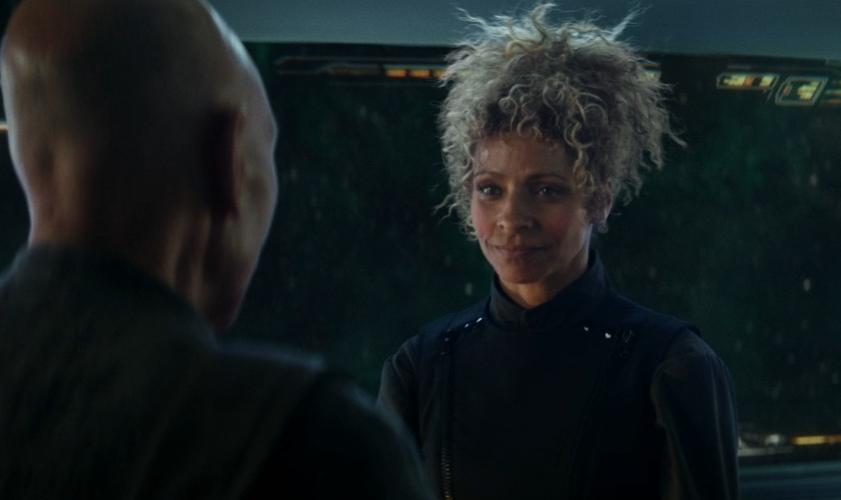 The viewer is left wondering why it is that Picard has any desire to bring this mean, drunken, drug-rattled black trailer woman on his mission in the first place. It is said that she can obtain a ship, but surely, the former high-ranking admiral in Starfleet knows more than one person that can obtain a ship, doesn’t he?